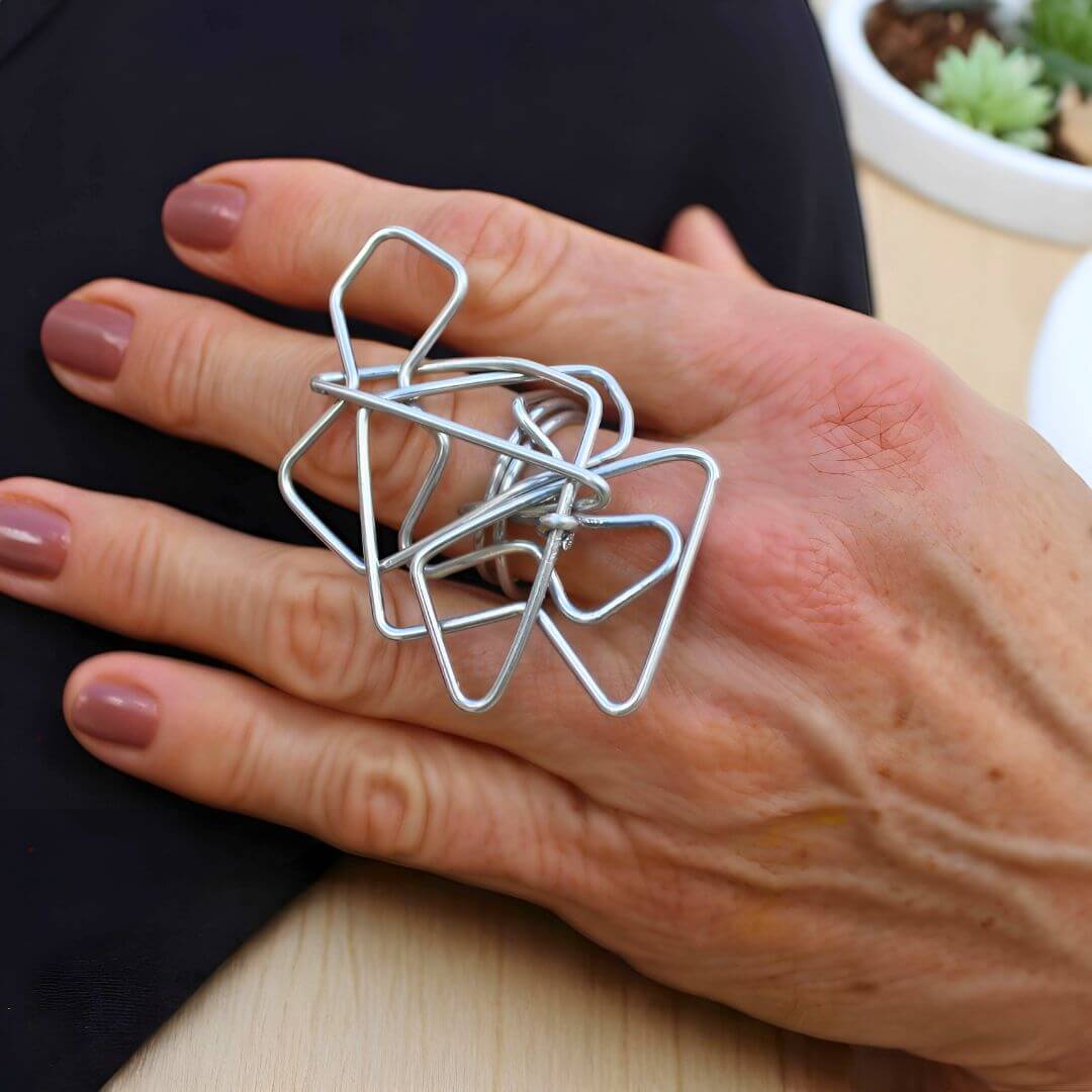 Adicione um toque de personalidade ao seu visual com o anel Fios de Alumínio, a expressão perfeita de estilo contemporâneo!